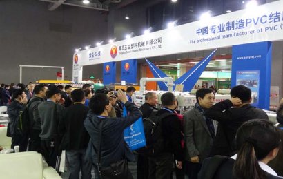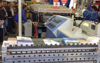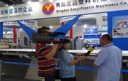 中国国际橡塑展Chinaplas2014 上海展 三益现场生产PVC发泡板设备(产量400kg/h)